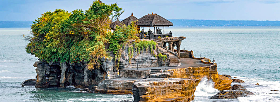 Tanah Lot Temple is perhaps one of the most recognizable temples in all of Bali, and one of the seven sea temples along the coast. It sits on an outcrop of rock that sits just offshore, with waves crashing on all sides. The unique location has turned Tanah Lot Temple into a religious and cultural icon. Established in the 16th century, the temple is built harmoniously into the rock and enhances the stunning natural beauty of the area. This provides a gorgeous backdrop for photographs, especially during sunset. Every evening, tourists flock to Tanah Lot Temple to snap photos of the brilliant sky behind the craggy temple rock.